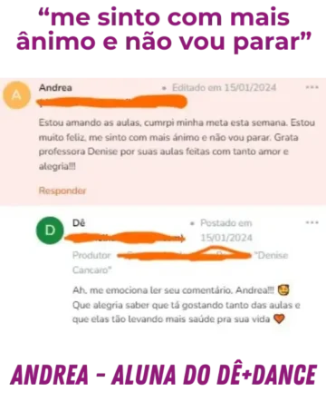 E olha aqui a Andrea, que tá muito feliz pelo ânimo renovado com o Dê+Dance: