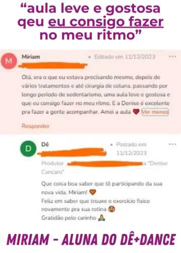 Dá uma olhada no que uma aluna que encontrou no Dê+Dance o jeito de se renovar e sair do sedentarismo, mesmo após uma cirurgia: